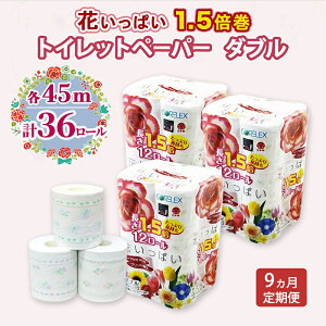 【ふるさと納税】定期便 全9回 長持ち 1.5倍巻き 花いっぱい トイレットペーパー ダブル 45m 計36ロール (12ロール×3パック) 全18種 花柄 プリント ハーブ 香り...