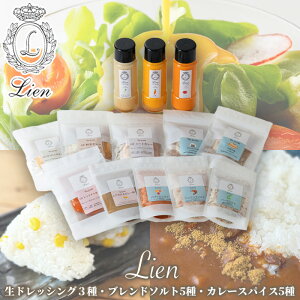 返礼品詳細 野菜を美味しく食べてもらいたいとの願いをこめ開発した野菜ドレッシングづくりから生まれたLien(リアン)。 野菜で野菜を美味しく食べる「3種のドレッシング」、様々な料理を美味しくする「5種のブレンドソルト」、簡単に