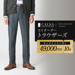 CALSA公式オンラインショップで利用できるオンラインクーポンです。 好みの生地やスタイルを選択してオーダーできるので、家族、友人などへのプレゼントにも最適です。 1970年から約半世紀にわたりトラウザーズ専門のメーカーとして培っ