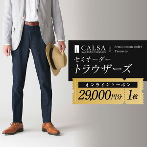 CALSA公式オンラインショップで利用できるオンラインクーポンです。 好みの生地やスタイルを選択してオーダーできるので、家族、友人などへのプレゼントにも最適です。 1970年から約半世紀にわたりトラウザーズ専門のメーカーとして培っ