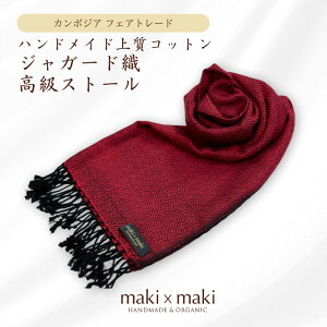 【ふるさと納税】【makixmaki】ハンドメイド上質コットン ジャガード織ストール(フェアトレード)【選べるカラー ピンク&グレー / バーガンディー(エンジ) / サックスブル...
