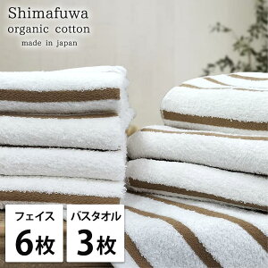 【ふるさと納税】タオルセット オーガニックコットン しまふわ GY グレー フェイスタオル 6枚 バスタオル 3枚 タオル セット 綿 オーガニックコットンタオル 綿100% 綿1...