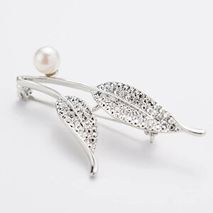 製品仕様 商品名 アコヤ真珠ブローチ(リーフ) 内容量 【ブローチ】 珠サイズ:8mm サイズ:60mm×30mm 金具:真鍮代用ロジウムメッキ 透明石:ガラス 配送方法 常温 事業者 オーハタパール...
