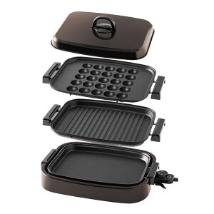 商品詳細 ●平面プレート、波型プレート、たこ焼きプレートの1台3役 ●保温から強火まで、設定ラクラク ●お手入れしやすいプレートフッ素コーティング ●お手入れカンタン水洗いできる着脱式プレート ●一度に25個焼けるたこ焼きプレー