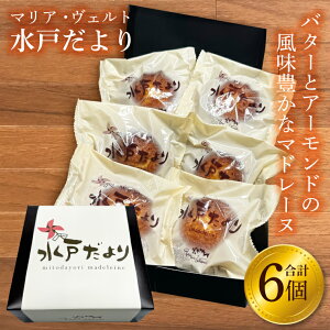 ・茨城県産の卵を使用し、バターとアーモンドの風味豊かなマドレーヌです。 ・当店人気No.1の焼菓子を詰合せました。 名称 水戸だより マドレーヌ6個入り 内容量 マリア・ヴェルト 水戸だより(6個入り)...