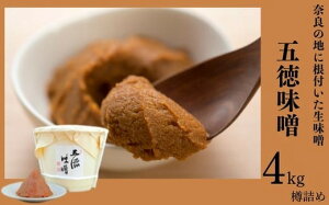 返礼品詳細 名称 五徳味噌4kg樽詰め 内容量 4kg(28.5×28.5cm) 賞味期限 180日 配送方法 夏季のみ冷蔵配送 製造 (株)井上本店 五つの徳を持つ五徳味噌は、昭和40年代半ばから平成12年まで奈良市で行われていた「...