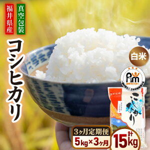 【ふるさと納税】【新米】<真空包装> 定期便3ヶ月 5kg×3回 令和7年産 米 コシヒカリ 精米 福井県産米 【白米 5キロ 15キロ こしひかり 真空パック お米 人気品種 産...