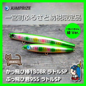 ぶっ飛び君95Sラトルとかっ飛び棒130BRラトル(オリカラ:緑Ver.)2本セット 商品説明 一宮町に本社を置く釣具メーカー株式会社ジャンプライズの大人気ルアー『ぶっ飛び君95Sラトルとかっ飛び棒130BRラトル』の2本セット