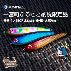 太陽Ver.)3本セット 商品説明 一宮町に本社を置く釣具メーカー株式会社ジャンプライズの大人気青物ルアー『ララペン150F』の3本セットです。 ララペン150Fは、一宮町をイメージした緑