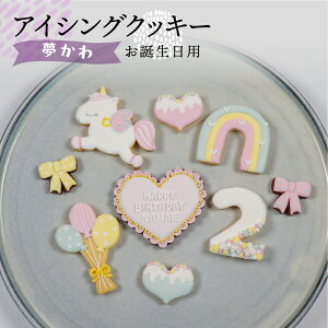 名称 お誕生日用(夢かわ)アイシングクッキー 9枚入り 内容量 9枚入り(夢かわ) 総重量 約100g ハートプレートの直径 約6.5cm 【※※必ずご備考欄にご記入ください※※】 プレートにお名前を入れます。 名前の字体、数字(数字...