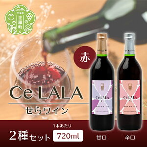 「Ce LALA(セララ)」 世羅ぶどうが持つ本来の味わいを大切にして仕上げた 親しみやすく、気軽に楽しめるワイン。 赤甘口 ●ぶどう本来の甘さと香りに、バランスの良い渋みと酸味 ●食中酒としてもお飲みいただけるやや甘口ワイン 食前酒