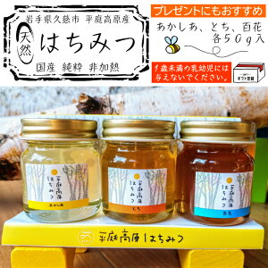 【ふるさと納税】「平庭高原はちみつ3種(百花、とち、アカシア各50g)セット」国産 純粋 非加熱 無加糖 無添加 はちみつ 蜂蜜 ハニー 百花 栃 とち アカシア アカシヤ お試し...