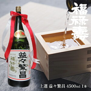 名称清酒内容量福禄寿酒造 上選 益々繁昌(4500ml)×1本(アルコール度 15〜16度・精米歩合60%・国産米)原材料米(国産)、米こうじ(国産米)、醸造アルコール保存方法直射日光、高温多湿を避けて冷暗所にて保管事業者北宇商店配送方法