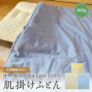 【ふるさと納税】天然繊維手作りオーガニックコットン肌掛けふとん 800g(カバー付) 選べる カラー タンポポ ピンク ブルー 布団 掛け布団 オーガニック コットン 綿 カバー付...