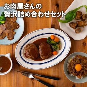 自慢のお肉で作った、お肉屋さんの自家製品を詰め合わせています。湯煎で温めるだけのものや、人気のハンバーグなど、どれも肉屋ならではの品です。返礼品名お肉屋さんの贅沢詰め合わせセット商品内容牛丼2(各200g)、味付きごぼう巻き2(
