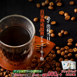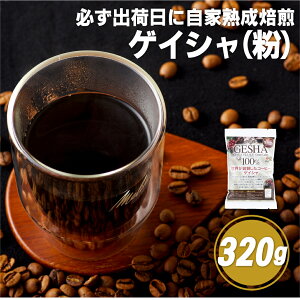 【ふるさと納税】【希少グリーンラベルに厳選】必ず出荷日に自家熟成焙煎 ゲイシャ粉(320g) 希少なゲイシャ「グリーンラベル」のみに厳選 豆の銘柄に合わせた温度と風量 コーヒー粉 ...