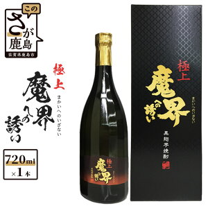 黒麹芋焼酎『極上魔界への誘い』 原料に鹿児島産の綾紫芋と黒麹を使用して造った芋焼酎魔界への誘いと、2年間土蔵の中でカメ熟成させた芋焼酎魔界への誘いを絶妙な割合でブレンドした逸品。 綾紫芋の甘みと2年間カメ熟成されたコクとま