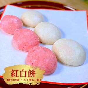 【ふるさと納税】老舗餅屋の紅白餅 セット 白餅 エビ餅 各 20個 昔ながらの伝統的な手法 手作り つきたて 瞬間冷凍 保存料不使用 杵つき餅 お餅 丸餅 紅白餅 食品 食べ物 冷...