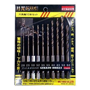 月光ドリルは、特許を取得したドリルの先端形状で一般鋼からステンレスの穴あけに大変適しています。 本来であれば必要な下穴作業や、ポンチなどの全工程が一切必要ありません。 穴を開けたい場所へ滑らず素早く、きれいな穴開けが可