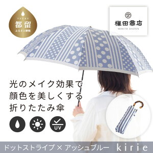 【ふるさと納税】【槙田商店】晴雨兼用折りたたみ傘 kirie ドットとストライプ アッシュブル | 送料無料 槙田商店 傘 雨傘 おしゃれ レディース 贈答 プレゼント ギフト 母...