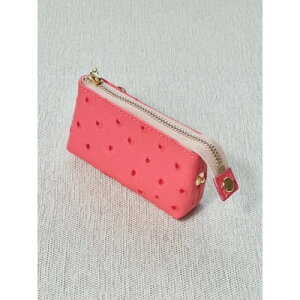 オーストリッチの型押しをした豚革で作ったカラフルな名刺入れです。発色が綺麗なレッドの革にブルーの糸とゴムを差し色にしました。内側にほんの少しだけ入った水色もかわいい、遊び心いっぱいの作品です。名刺入れとしてもカード入れとしても使えます...