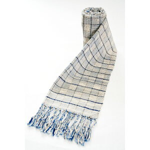 丹波地域で伝わる伝統技術を用い、手糸を草木で染め上げストールにしました。 ≪厚手≫丹波木綿ストール チェック 藍×ベージュ