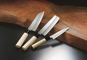 日本有数の刃物産地のひとつ、高知県の土佐打ち刃物。職人が手造りで鍛え上げた、切れ味抜群の高級料理包丁。 土佐高級料理包丁 出刃包丁16.5cm(青紙)×柳刃包丁24cm(青紙)×身卸包丁21cm(白紙)