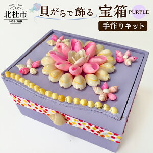 【ふるさと納税】 手作りキット 貝がらアート 宝箱 選べるカラー ホワイト パープル ブルー 縦約10cm×横約13cm×高さ約7cm 木製ボックス アートキット 天然貝がら 小物...