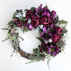 アーティフィシャルフラワー(高品質の造花、MAGIQ仕様)を使った生花に近いリアルなリースです。 直射日光の当たる場所や湿度の高いところを避けて飾れば10年以上美しく飾ることが出来ます。 ご自宅を彩る飾り物や贈り物としても最適な