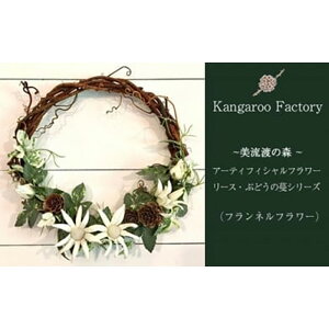 アーティフィシャルフラワー(高品質の造花、MAGIQ仕様)を使った生花に近いリアルなリースです。 名称 美流渡の森 アーティフィシャルフラワー・リース ぶどうの蔓シリーズ (フランネルフラワー) 内容量 外径約23cm 事業者 Kan...