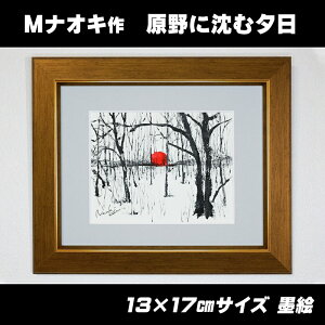 【ふるさと納税】絵画 1枚 「原野に沈む夕日」(墨と水彩絵具 ) 【発送時期が選べる!】 アーティスト アート 釧路町の 大自然 Mナオキオリジナル 作品 ワンストップ特例制度 オ...