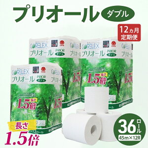 【ふるさと納税】定期便 全12回 プリオール・ピコ トイレット ペーパー 1.5倍巻き ダブル 45m 計36ロール (12ロール×3パック) 日本製 まとめ買い リサイクル 防災...