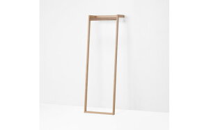 壁面に立てかけることで空間を有効に使えるハンガーラック。ハンガーを掛ける部分は、アクセントにもなり傷が目立ちにくいクルミを使用。約8本のハンガーを掛けることができます。「たてかけミラー」と組み合わせたスマートなスタイリ