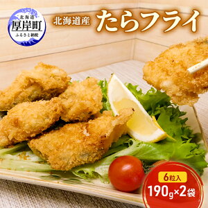 名称タラフライ内容量北海道産たらフライ 6粒入190g×2袋(合計380g)原材料真鱈(北海道産)、パン粉(小麦粉、イースト、植物性ショートニング、食塩、ぶどう糖/イーストフード、ビタミンC)、フライ用調味料(小麦粉、パン粉、植物たん白