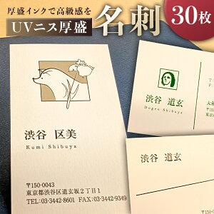 に仕上げます。高級感が出ますので弊社取引先の企業からも大変ご好評いただいております。 UVニス厚盛名刺30枚 【199001】