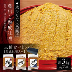 名称 【蔵出し熟成味噌の3種食べ比べ】天然醸造の生みそ『桜・粋・然』各1kg詰合せ(無添加・国産原材料) 保存方法 冷蔵 発送時期 2025年10月より順次発送※生産・天候・交通等の事情により遅れる場合があります...