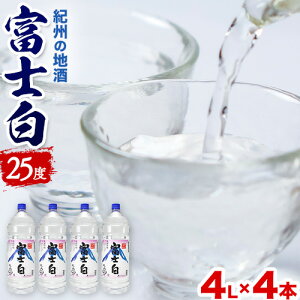 【ふるさと納税】 紀州の地酒 甲類 焼酎 富士白 ふじしろ 25度 4L×4本 エバグリーン 中野BC株式会社 《30日以内に出荷予定(土日祝除く)》和歌山県 日高町 酒 お酒 地...
