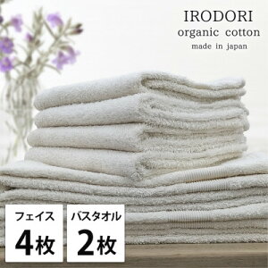 お肌にやさしいふんわりやわらかなオーガニックコットンタオル 【フェイス4枚バス2枚組】オーガニックコットンフェイスタオル&バスタオルセット かすみ色アソート