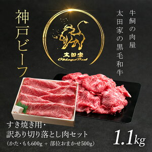 【ふるさと納税】神戸牛 すき焼き用 600g・訳あり切り落とし肉 500gセット 合計1,100g (1.1kg) 神戸ビーフ 神戸肉 ブランド和牛 ブランド牛 国産和牛 黒毛和牛...