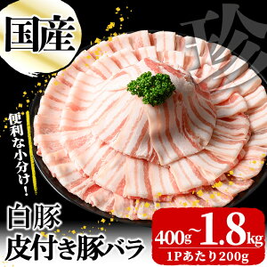 【ふるさと納税】【内容量が選べる】珍しい!!国産白豚皮付き豚バラ(計400g〜1.8kg 1Pあたり200g) 国産 豚 豚肉 肉 白豚 バラ 豚バラ 皮 皮付き お鍋 しゃぶしゃ...