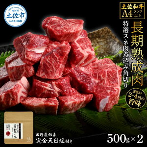 【ふるさと納税】土佐和牛 特選スネ肉煮込み角切り500g×2 田野屋銀象完全天日塩2P付き 1kg 1キロ 長期熟成肉 田野屋銀象 完全天日塩付き スネ肉 煮込み 角切り 肉 お肉...