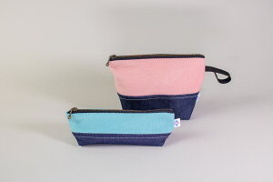 【デニこポーチ&ペンケース】 日本の伝統的なさしこ生地と現代的なデニム生地を組み合わせた、独自のデザインが特徴のアップサイクルポーチとペンケースのセットとなります。 職人による手染めの色柄、本来であれば処分されてしまう