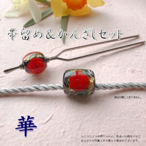 【ふるさと納税】帯留め&かんざしセット 選べる3種類(華・咲・輝) 手作り ガラス 硝子 アクセサリ ヘアアクセサリー 髪飾り まとめ髪 二本挿し とんぼ玉 金具 化粧箱付き 和装...