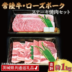 【ふるさと納税】【常陸牛・ローズポークステーキ焼肉セット(5~7人前)】 常陸牛 サーロインステーキ 約600g(300g×2枚) ローズポーク焼肉用 約400g (ロース200g...