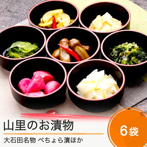 商品説明名称山里のお漬物いろいろ6袋 (大石田名物「ぺちょら漬」他) 説明 TV番組でも話題になった大石田町発祥の「ぺちょら漬」をはじめ、山里のおばあちゃんが手間暇かけて漬けた季節の漬物6袋の詰合せです。四季折々の漬物の味をお
