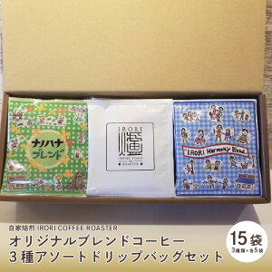 IRORI COFFEE ROASTERの焙煎師が厳選したスペシャルティコーヒー豆を焙煎し、ブレンド。店舗ではコーヒー豆として販売している自慢の豆をそのままドリップバッグに使用しています。当店で人気のブレンド3種類を各5袋、合計15袋...