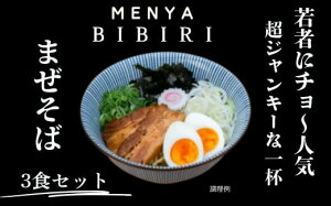 【名称】MENYA BIBIRI まぜそば3食セット MENYA BIBIRI まぜそば3食セット 麺、スープ、バラチャーシュー1枚、メンマ、ゆず ※アレルギー情報:小麦・そば・卵・乳・さば・大豆・鶏肉・豚肉・ゼラチン ※冷凍でお届け...