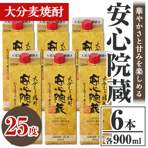 【ふるさと納税】安心院蔵 パック 25度セット(計5.4L・900ml×6本)酒 お酒 むぎ焼酎 900ml 安心院蔵 麦焼酎 アルコール 飲料 常温 紙パック セット【10610...