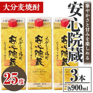 【ふるさと納税】安心院蔵 パック 25度セット(計2.7L・900ml×3本)酒 お酒 むぎ焼酎 900ml 安心院蔵 麦焼酎 アルコール 飲料 常温 紙パック セット【10610...
