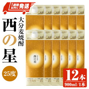 【ふるさと納税】西の星 25度 パック(計10.8L・900ml×12本)酒 お酒 むぎ焼酎 900ml 麦焼酎 常温 西の星 三和酒類 紙パック スピード発送 【10730430...